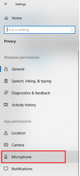 In the left sidebar under the App permissions section, select the option for Microphone.